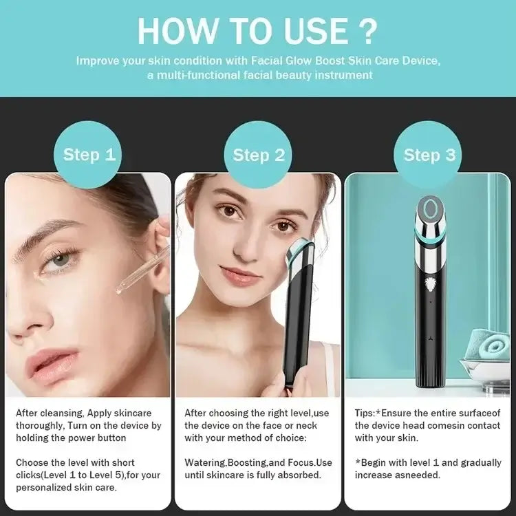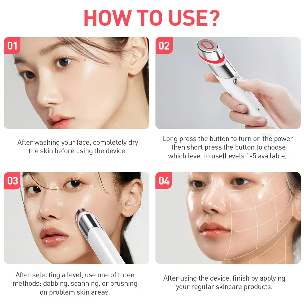 Warming wand head helps to increase the absorption of skin care products, reduce redness, and support healthy, glowing skin